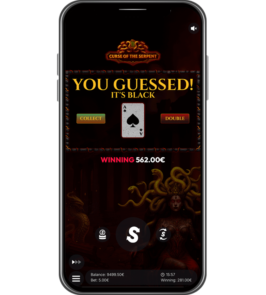 After Free Spins, players may choose to risk it all in a fast-paced 50/50 gamble feature. Pick the color of the next card—red or black—for a chance to double your winnings up to 4 times in a row. Dare to test your luck?