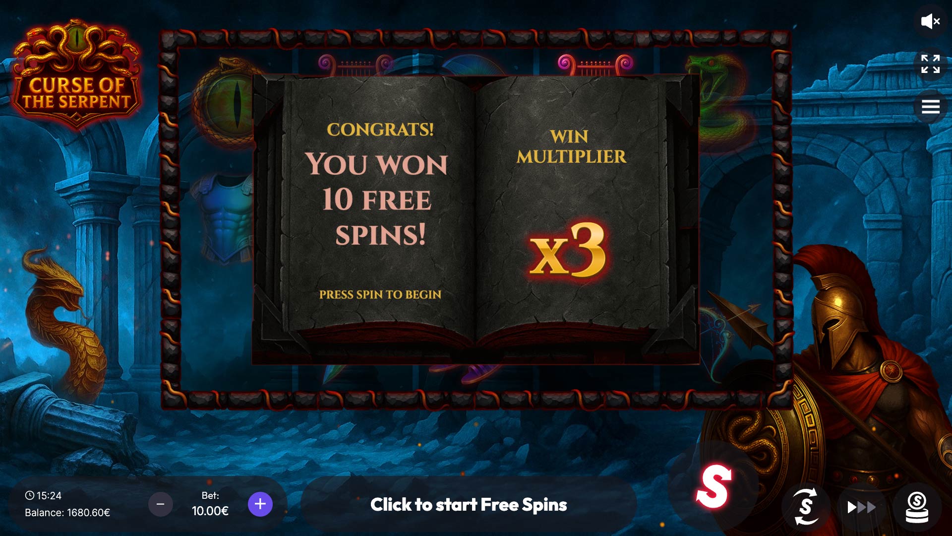 Curse of the Serpent invites players into a mysterious world of ancient magic and hidden treasures. This 5-reel, 25-payline slot features the powerful Magic symbol, acting as both WILD and SCATTER, unlocking thrilling Free Spins and epic wins. With high volatility and a 95.49% RTP, every spin holds the potential for enchanting rewards and heart-pounding surprises.