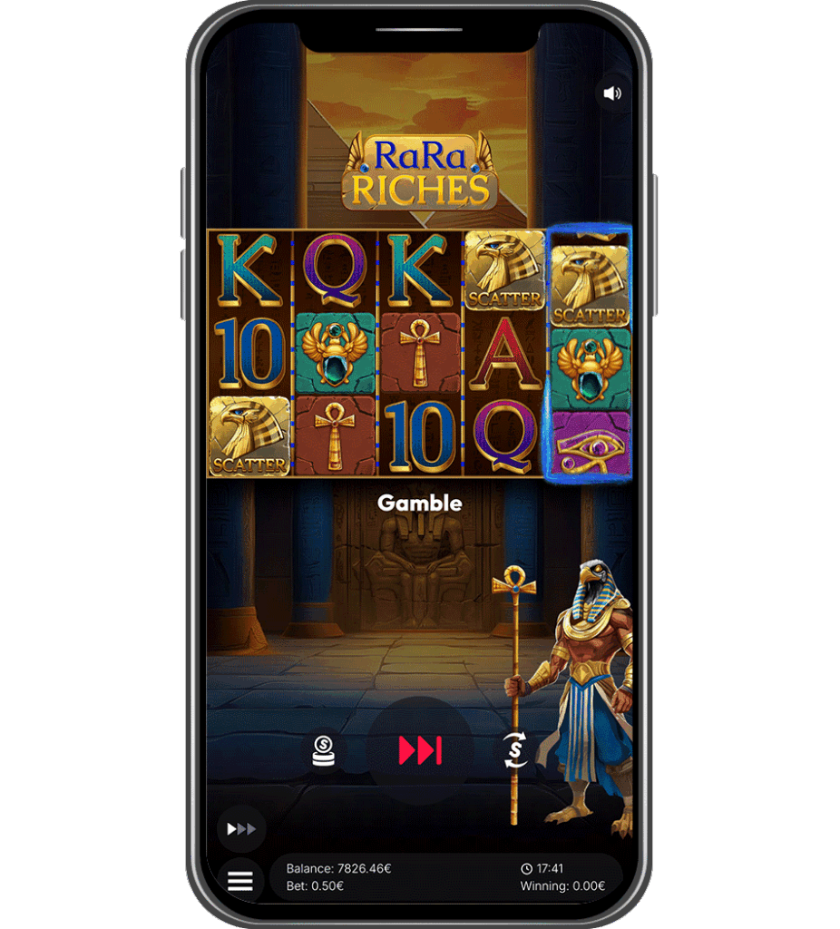 Ra Ra Riches™ transports players deep into the golden halls of ancient Egypt, where treasures of the pharaohs await! This 5×3 slot with up to 25 paylines brings powerful WILDs to complete big wins, while SCATTER symbols unlock 10 Free Spins with unlimited retriggers for endless adventure. Before the Free Spins begin, the mystical Wheel of Fortune grants a win multiplier of up to ×100, amplifying every reward. For the bravest explorers, the Double or Nothing gamble feature offers the chance to double Free Spins winnings up to four times in a row. Step into the temple of Ra and claim your share of legendary riches!