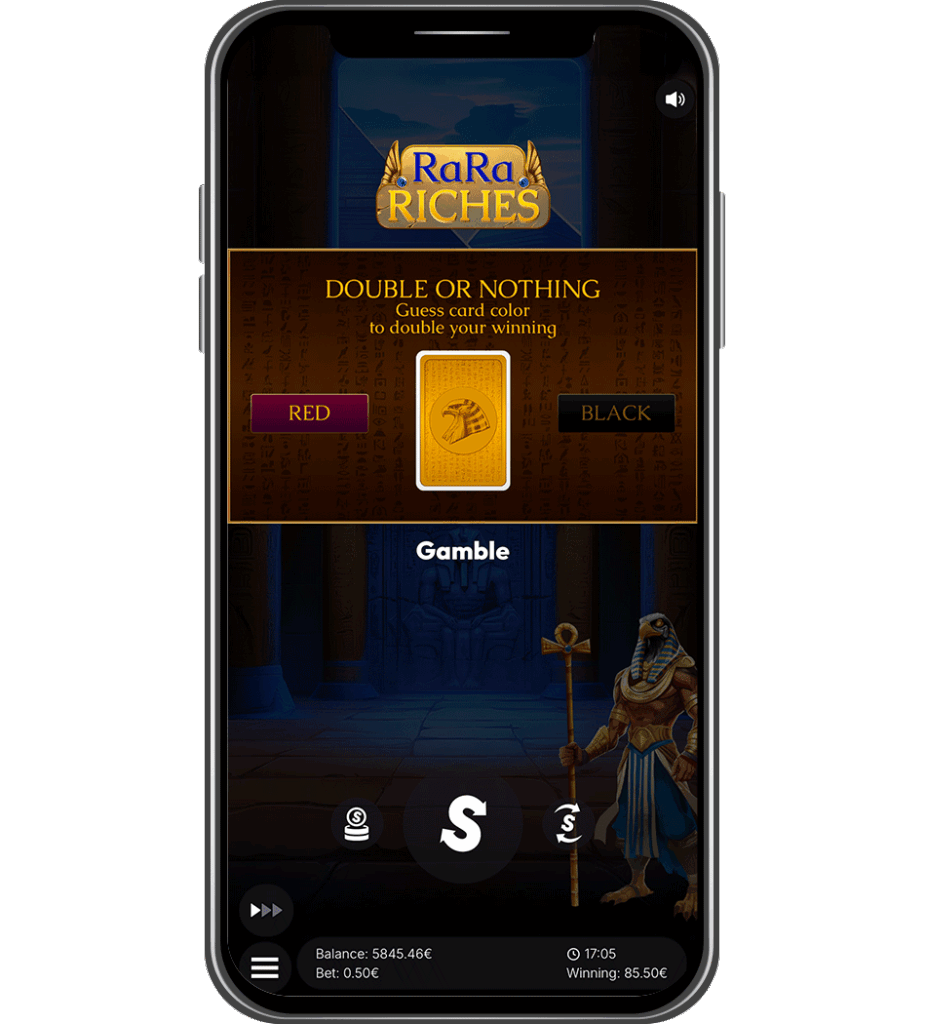The gamble can be played up to 4 consecutive times, offering the chance to multiply winnings dramatically. However, one misstep may cause the treasure to vanish back into the sand, reminding players that even the pharaohs respected destiny.