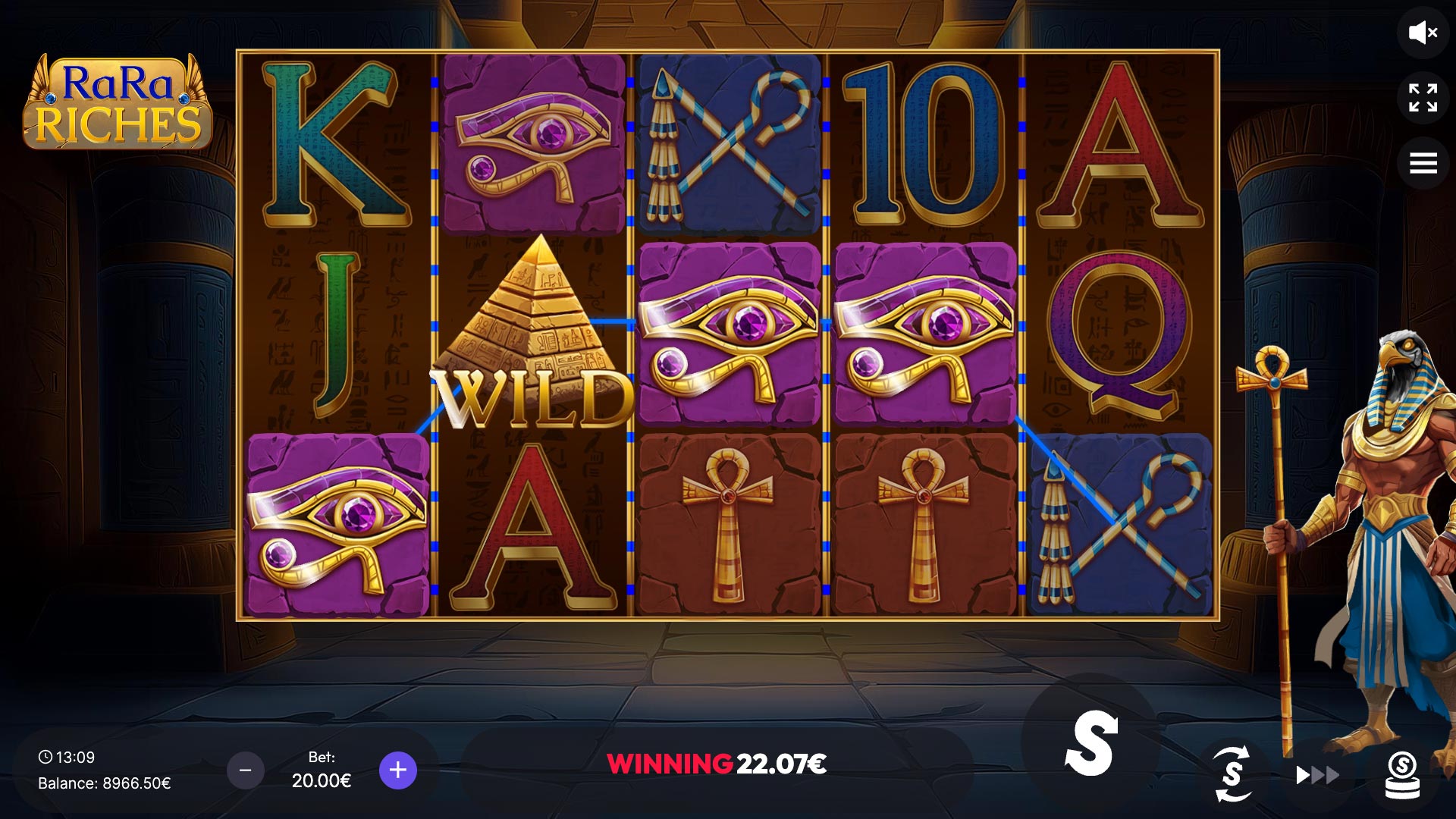 Ra Ra Riches™ transports players deep into the golden halls of ancient Egypt, where treasures of the pharaohs await! This 5×3 slot with up to 25 paylines brings powerful WILDs to complete big wins, while SCATTER symbols unlock 10 Free Spins with unlimited retriggers for endless adventure. Before the Free Spins begin, the mystical Wheel of Fortune grants a win multiplier of up to ×100, amplifying every reward. For the bravest explorers, the Double or Nothing gamble feature offers the chance to double Free Spins winnings up to four times in a row. Step into the temple of Ra and claim your share of legendary riches!