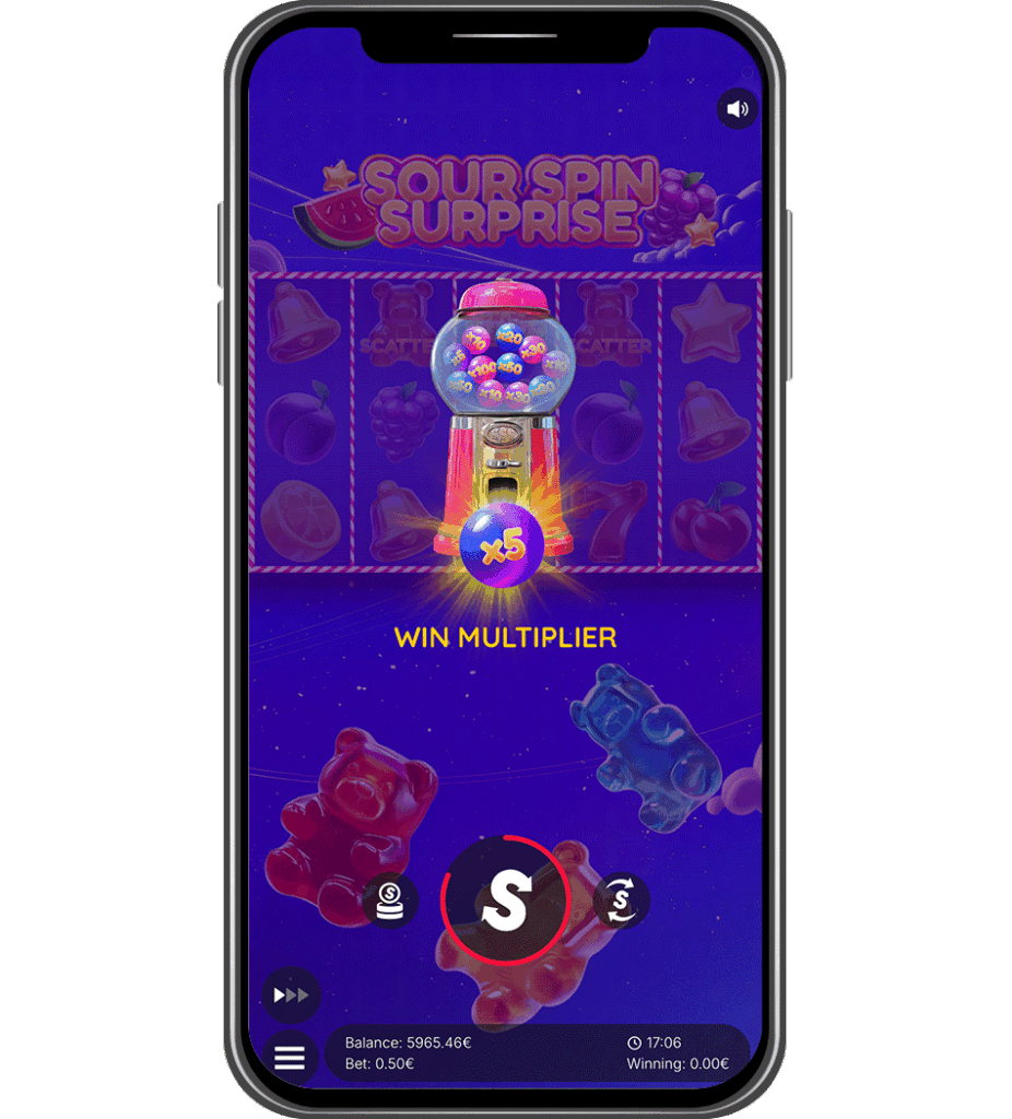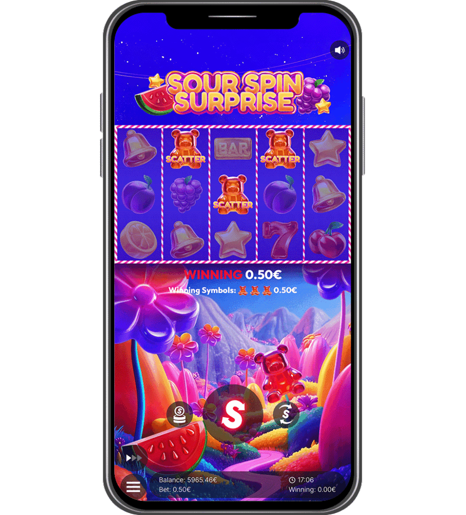 Sour Spin Surprise takes you into a vibrant candyland bursting with sweet wins and sour twists! This colorful 5×3 slot with up to 25 paylines features WILDs to boost your combinations and SCATTER-triggered Free Spins with unlimited retriggers. Before Free Spins begin, the exciting Candy machine spins to award a global multiplier of up to ×100, supercharging every reward. And for those craving even more thrill, the Double or Nothing gamble feature lets you guess sweet or sour for the chance to double your winnings up to four times in a row. Get ready for a sugar rush of fun, flavor, and fantastic prizes!