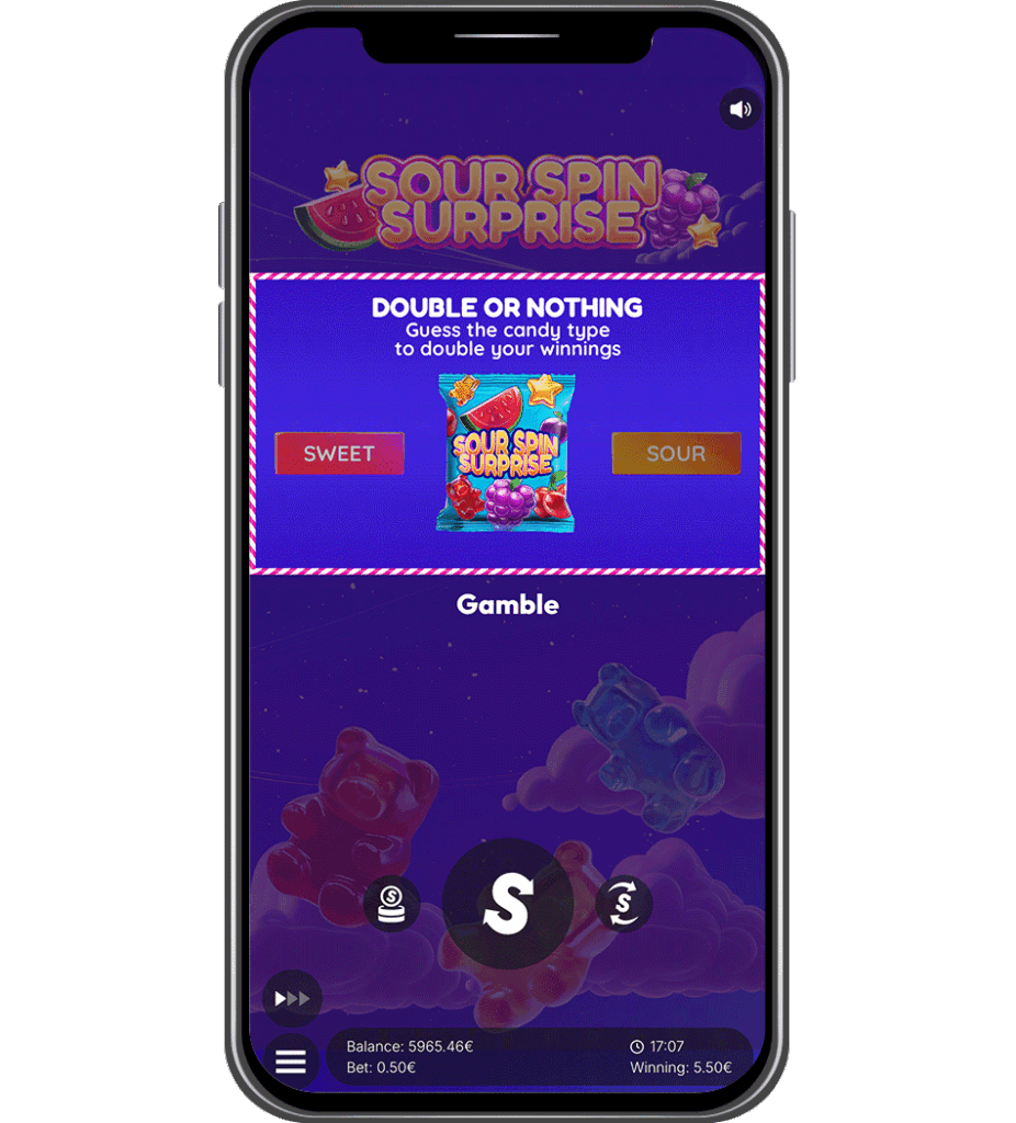 The gamble may be played up to 4 consecutive times, offering thrilling risk–reward moments reminiscent of choosing between a sweet treat or a super-sour candy. One lucky guess can double the prize — but one wrong choice might leave players puckering!