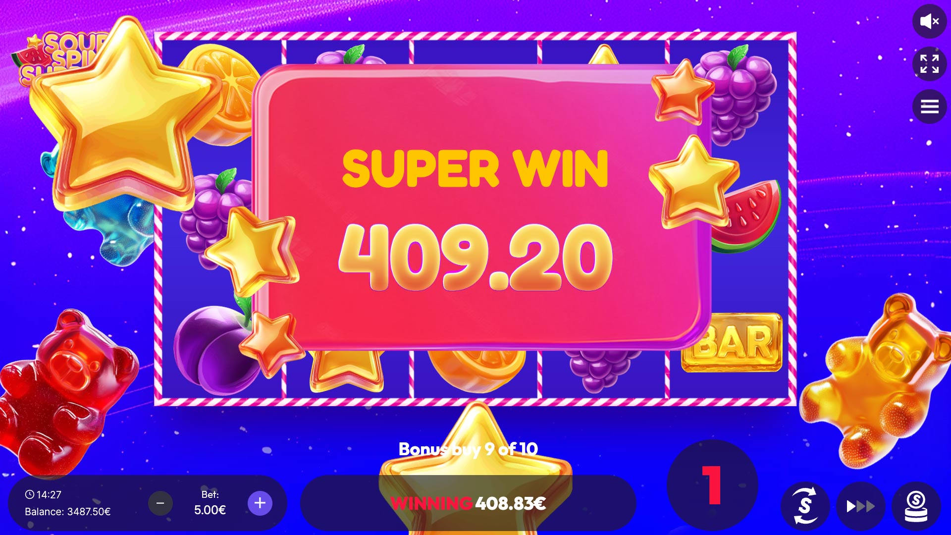 The bonus round begins instantly, offering full access to vibrant animations, energetic gameplay, and enhanced payouts from the very first spin. Bonus Buy RTP: 95.05%. It’s the perfect shortcut for anyone eager to jump straight into the candy-coated action.