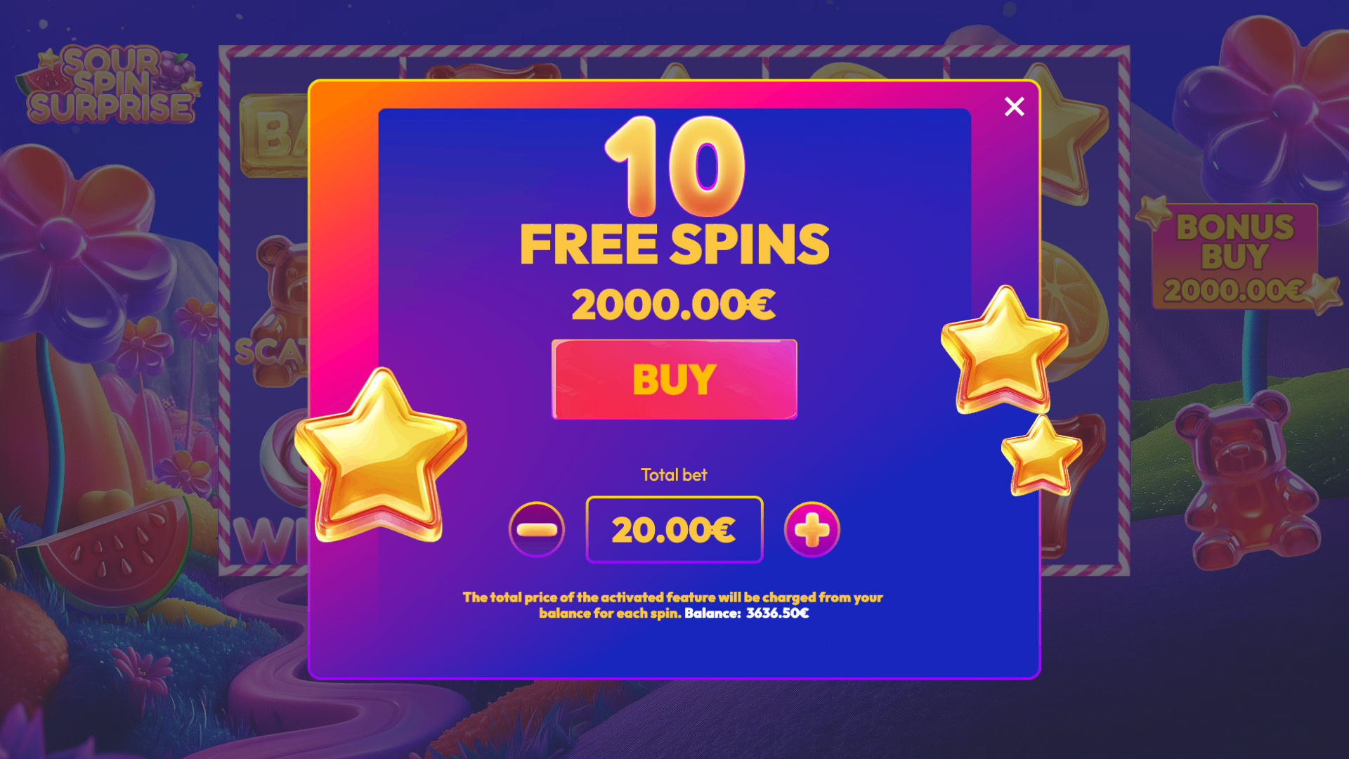 For players craving instant sweetness, the Bonus Buy option allows direct entry into the Free Spins feature. Once activated, the multiplier bubble is revealed immediately, giving players a head start on their sugary adventure.