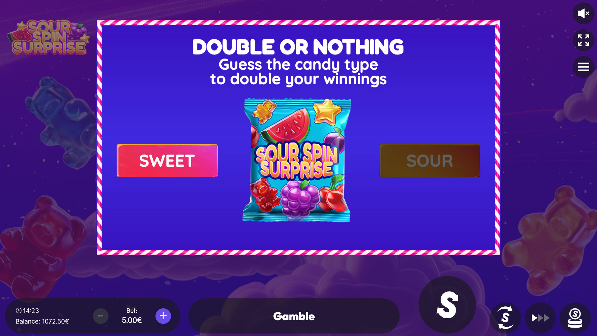 The gamble may be played up to 4 consecutive times, offering thrilling risk–reward moments reminiscent of choosing between a sweet treat or a super-sour candy. One lucky guess can double the prize — but one wrong choice might leave players puckering!